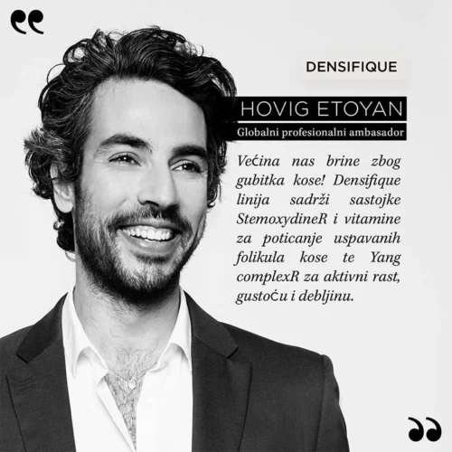 Kérastase Densifique Ampule za Muškarce su specijalizirani tretman za muškarce koji žele povećati gustoću svoje kose. Obogaćene Stemoxydine®-om, aktivnim sastojkom koji pomaže u obnovi i poboljšanju gustoće kose, te Yang kompleksom, ove ampule učinkovito obnavljaju vlakna kose i povećavaju njihov volumen. Redovitim korištenjem kosa postaje gušća, jača i zdravija. Tretman je jednostavan za primjenu, brzo se upija u vlasište i ne ostavlja masne tragove, čineći kosu lakšom za stiliziranje.