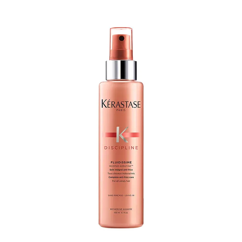 Kérastase Discipline Fluidissime Sprej je idealan za žene s neposlušnom kosom koja je sklona kovrčanju i frizzu. Ovaj sprej pruža instant kontrolu, zaglađuje kosu i čini je lakšom za stiliziranje. Obogaćen Amodimethicone-om koji smanjuje kovrčanje i poboljšava sjaj, te Glicerinom koji održava kosu hidratiziranom, ovaj proizvod također pomaže ubrzati feniranje. Kosa postaje mekša, s većim sjajem i duže ostaje glatka, bez kovrčanja.